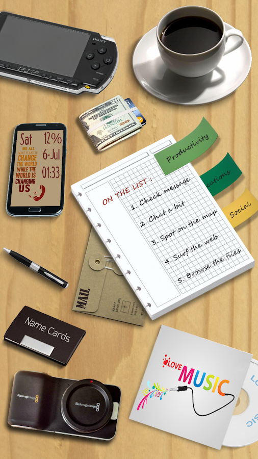 - Layout and resize all objects (shortcuts and widgets) totally freely
